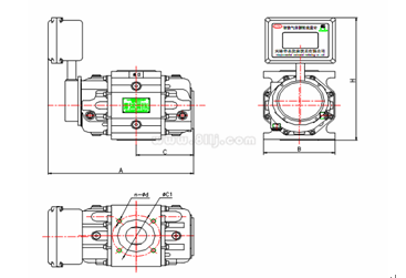 在特殊情況下可采取下進上出或左進右出,但訂貨時需特殊說明,流量計出廠時標準產品為上進下出。安裝流量計時應設置前后閥門和旁通管路,以保證維修保養時,不必停氣。圖6、圖7、圖8分別為A、
